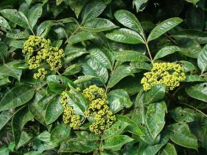 治疝气入囊:五月采谷树叶,阴干为末。每服一、二匙,空心温洒下。(《简便单方》)