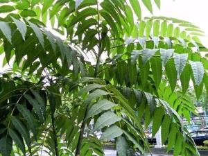 乔木,高达16米。树皮赭褐色,成片状剥落;小枝幼时具柔毛。双数羽状复叶互生,长25~50厘米,有特殊气味;具小叶10~22,对生或近对生,具短柄;长圆形至披针状长圆形,长8~15厘米,基部偏斜,圆或阔楔形,先端尖,全缘或有稀疏锯齿,上面深绿色,无毛,下面色淡,叶脉或脉间有长束毛;叶柄红色,基部肥大。圆锥花序顶生;花萼短小,5裂;花瓣5,白色,卵状椭圆形;退化雄蕊5,与5枚发育雄蕊互生;子房上位,5室,花盘远较子房为短。蒴果椭圆形或卵圆形,长2.5厘米,顶端开裂为5瓣。种子椭圆形有翅。花期5~6月。果期9月。
