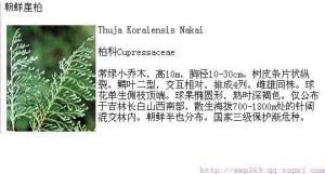 顶[0] 分享 分享到 QQ空间 微信 朝鲜崖柏仁 朝鲜崖柏,乔木,高达10m,胸径30-75cm。幼树树皮红褐色,平滑,有光泽;老树树皮来红褐色,浅纵裂。枝条平展或下垂,树冠圆锥形。叶鳞形,长1-2mm,先端钝或微尖,背面有明显或不明显的腺点;下部的鳞叶有白粉。球果椭圆状球形,长9-10mm,径6-8mm,熟时深褐色;种鳞4对,交叉对生,薄木质,下部2-3对,各有1-2种子。种子椭圆形,扁平,长约4mm,宽1.5mm,两侧有翅,翅宽1.5mm。生...... 目录 1生长环境 2分布范围 3主要价值 4采收储藏 5出处 生长环境 生于海拔700-1400m湿润、富有腐殖质的谷地,但在山脊及裸露的岩石缝中也能生长。 分布范围 分布于吉林延吉和长白山等地。 主要价值 【功效】养心安神;润肠通便 【主治】心悸失眠;多汗遗精;肠燥便秘 【功效分类】养心安神药;润肠通便药 【用法用量】内服:煎汤,5-20g;或入丸、散。 采收储藏 秋末果熟后采收,除去种壳备用。 出处 《中华本草》 附件列表 下载次数:0 0 词条内容仅供参考,如果您需要解决具体问题(尤其在法律、医学等领域),建议您咨询相关领域专业人士。 上一篇 朝鲜当归 下一篇 朝鲜崖柏