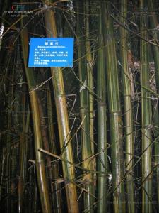 高10-15m,径4-6㎝,节间长20-45㎝,壁厚达8mm,表面绿色,幼时被白粉和易落白色细毛;基部节间具黄白色条纹,节上环生灰白色毛环。分枝坚挺且低。秆箨绿色,具淡色纵条纹,厚纸质,箨鞘先端呈不对称的圆拱形;箨耳明显,均具皱折,边缘具流苏状卷曲遂毛,大耳椭圆形下延,约比小耳大1倍,小耳卵形;箨舌高2-5mm,边缘锯齿状;箨叶直立,长三角形,背面无毛,腹面有细刺毛。叶片长披针形,长9-14㎝,宽0.7-2.5㎝,背面密生短柔毛。竹材坚实挺直,可作棚架、撑篙、农具、家具及建筑用材,亦可劈篾编织竹器,节间去皮适刮下中层为“竹茹”,可入药用以清热、治吐篾 小儿惊病等症。