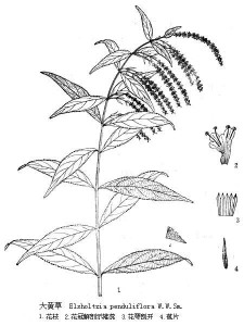 【苗药】把卡都:全草治肺炎,乳腺炎,咽喉炎,扁桃体炎,支气管炎,黄疸性肝炎,炭疽病,疟疾,流感《滇药录》、《滇省 志》。Elsholtzia rugulosa Hemsl.野拔子(唇形科)。