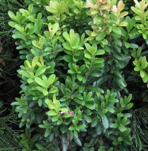 灌木,高3-4米;枝圆柱形;小枝四棱形,被短柔毛,后变无毛。叶薄革质,通常匙形,亦有狭卵形或倒卵形,大多数中部以上最宽,长2-4厘米,宽8-18毫米,先端圆或钝,往往有浅凹口或小尖凸头,基部狭长楔形,有时急尖,叶面绿色,光亮,叶背苍灰色,中脉两面凸出,侧脉极多,在两面或仅叶面显著,与中脉成50-60度角,叶面中脉下半段大多数被微细毛;叶柄长1-2毫米。花序腋生,头状,长5-6毫米,花密集,花序轴长约2.5毫米;苞片卵形,背面无毛,或有短柔毛;雄花:约10朵,花梗长仅0.4毫米,萼片卵圆形,长约2.5毫米,雄蕊连花药长6毫米,不育雌蕊有柱状柄,末端膨大,高约2.5毫米,和萼片近等长,或稍超出;雌花:外萼片长约2毫米,内萼片长约2.5毫米,受粉期间,子房长2毫米,无毛,花柱长1.5毫米,略扁,柱头倒心形,下延达花柱1/3-1/2处。蒴果卵形,长5毫米,宿存花柱直立,长3-4毫米。花期2月,果期5-8月。