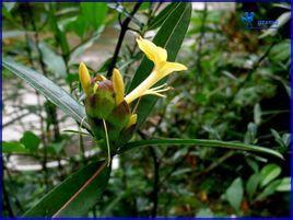 花叶假杜鹃:灌木,高约2m。茎直立,多分枝。叶对一;有短柄;吉片披针 形,长4-8cm,先端渐尖,基部楔形,两面均被白色柔毛;在叶柄基部有一对向下的针刺,紫红色。穗状花序顶生或腋生;具多数大苞片;萼片4,成对,外面一对较大;花黄色,花冠管状,5裂,裂片近相等;发育雄蕊2-3,退化雄蕊1-2;子房上位,2室,花柱长。蒴果卵形,中部以下有种子4颗。花期5-7月。