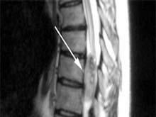 脊柱结核 依据病史,临床表现及影像学表现容易区分两者。 脊髓空洞症 发病徐缓。常见于20~30岁成人的下颈段和上胸段。一侧或双侧的多数节段有感觉分离现象及下运动神经无瘫痪,无椎管梗阻现象。MRI检查可明确诊断并和髓内肿瘤相鉴别。