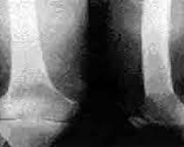 原发性骨淋巴瘤的X线表现多为溶骨性,“虫噬样”改变,在正常骨骼组织和病变组织之间有明显的分界限,部分病人有骨皮质的破坏和缺损,但较少有骨膜反应,还有部分病人表现为骨分离,即骨组织的正常部分与病变部分分离,亦可表现为病理性骨折。