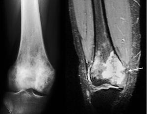1928年,Oberling首先报道该种病例的发生1939年,Parker和Jackson研究了17例病例当时称之为“原发性骨网状细胞肉瘤”,并将之重新命名为原发性骨淋巴瘤。原发性骨淋巴瘤的发病高峰是20世纪50年代左右。临床上多表现为局部的骨骼疼痛,或触及逐渐增大的肿块,在疾病后期出现病理性骨折可伴有周围软组织的肿胀疼痛一般无全身症状如发热,消瘦,盗汗等CT或MRI可发现病变但需要行局部的病变活检才能确诊。