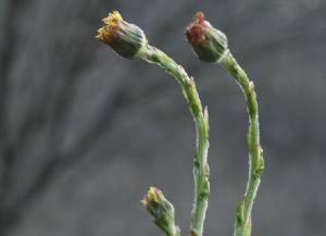 未开放的头状花序呈不规则短棒状,单生或2-3花序基部连生,俗称“连三朵”,长1-2.5cm。上端较粗,下端渐细或带有短梗,外面被有多数鱼鳞状苞片;苞片外表面红紫色或淡红色,内表面密被白色絮状茸毛。体轻。撕开后可见白色丝状绵毛;舌状花及筒状花细小,长约2mm。气香,味微苦、辛,带粘性,嚼之呈绵絮状。