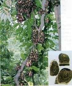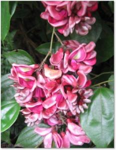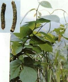 攀援状灌木,高2~4米,茎皮灰白色。羽状复叶,长10~20厘米,有5~9小叶;小叶矩圆形成卵状矩圆形,长2.5~10厘米,宽2~3.5厘米,纸质,先端钝,微凹,全缘,基部圆形或钝形,上面深绿.光滑,下面绿色;网脉两面均明显;小叶柄长4~5毫米;小托叶长约3毫米,针刺状。圆锥花序,顶生,柔弱,下垂,长5~10厘米;花序梗有黄短毛;花多数,密生,花柄比萼略短,具短毛;小苞二片,矩圆形,长约1.5毫米;萼钟形,长约3毫米,5裂齿短而钝,边缘有淡黄色短毛;花冠秃净,暗紫色,长13~15毫米,旗瓣比龙骨瓣略短而微凹头。荚果扁条形,薄而硬,秃净,长至15厘米,果瓣近木质,有3~6个种子,扁圆形。花期5~6月。果期11~12月。