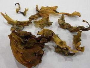1、海带:卷曲折叠成团状,或缠结成把。全体呈黑褐色或绿褐色,表面附有白霜。用水浸软则膨胀成扁平长带状,长50~150cm,宽10~40cm,中部较厚,边缘较薄而呈波状。类革质,残存柄部扁圆柱状。气腥,味咸。