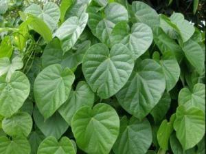 心叶青牛胆茎含季胺生物碱,主要为原小型的掌叶防己碱(palmatine)及少量药根碱(jatrorrhiyine);次为阿朴芬型的木兰花碱(magnoflorine)及胺类的胆碱(choline);茎含木兰花碱0.07%,又含tembatarine(为干茎重的0.012%)。有含生物碱宽筋藤碱(tinosporin)。其鲜茎又含呋喃二萜类的宽筋藤内酯(tinosporide,C(20)H(23)O(7))及心叶宽筋藤内酯(cordifolide),鲜茎的醇提取物得苦味质宽筋藤酮(tino sporonC(23)H(26)O(9),含呋喃基、内酯、酮基)、宽筋藤酸(tinosporoe,C(40)H(78)O(2),含羟基、酮基及烯基)、宽筋藤目定(tinos-Poridine,C(33)H(64)O(3));干茎用石油醚提得心叶宽筋醇(cordifol)及二十七烷醇(hepta-cosanol);茎含吉洛因(giloin,C(23)H(32)O(10))、吉洛因宁(giloinin,C(17)H(13)O(5))、吉洛甾醇(giloinsterol,C(28)H(43)O(2)。茎叉含β-谷甾醇、δ-谷甾醇、葡聚糖。