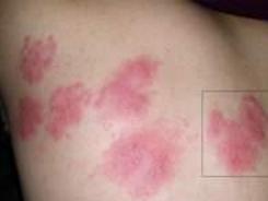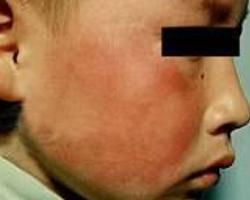 潜伏期为5~14天。病人多数为4~12岁儿童。常突然发疹而无全身症状,仅少数病人轻微发热,有时出现咽痛、呕吐、眼结膜及咽部充血。皮疹首先出现在面颊部、呈水肿性蝶形红斑,边界清楚,其上无鳞屑,局部温度增加,偶有微痒和烧灼感。皮疹不发生于口唇周围。经过1~2天后,在躯干、臀部及四肢出现对称性边界清楚花边状或网状斑丘疹,为本病特征。4~5天以后,红斑自颊部及躯干上消退。皮疹消退次序和出疹次序相同。皮疹消退后不脱屑。有时复发。常见于春季,病程10天左右。预后良好。