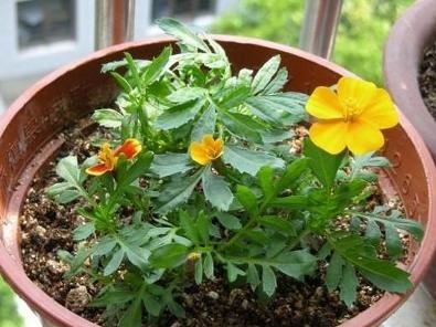三、栽培管理:冬季一般为低温低湿天气,这正是孔雀草生长困难时期,实践表明,若采用两层薄膜保护,孔雀草成活率仅为25%,若采用三层薄膜保护,孔雀草小苗成活率可达到95.22%。在苗床上将长有2至3对叶片的孔雀草小苗上小盆,待小苗服盆后,即可进行常规的水肥管理。由于是保护地栽培,每次浇完水肥后,要加强通风,防止湿度过大引起烂苗。春节过后,气温开始上升,孔雀草进入快速生长期,此时,可将苗床上的薄膜逐渐取下,同时加强肥水管理。