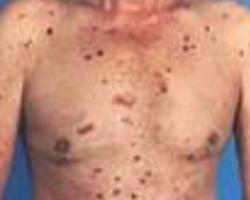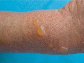 多见于老年人,大多在50岁以后发病。典型损害为疱壁较厚、紧张、呈半球形的大疱,直径约1~2cm,内含浆液,少数可呈血性。棘刺松解征阴性。水疱多在红斑或正常皮肤的基础上发生。疱不易破裂,糜烂面上常附血痂,较易愈合,有的患者初起时皮疹为浮肿性的红斑,或风团样损害,数日后才在此基础上出现大疱。皮疹好发于躯干、四肢屈侧、腋窝及腹股沟。约25%患者在口腔粘膜出现水疤或糜烂。病程大多进展较慢,水疱不断愈合及新生。患者自觉程度不等的瘙痒,全身健康状况一般良好。但若不及时治疗,皮疹将逐渐增多,泛发全身,大量体液通过体表丢失,机体日益衰弱,可因继发感染等而导致死亡。