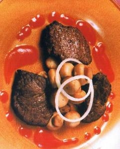 【原料】 :牛扒220克、番茄沙司30克、例想畔5克、圆葱碎5克、口蘑100克。